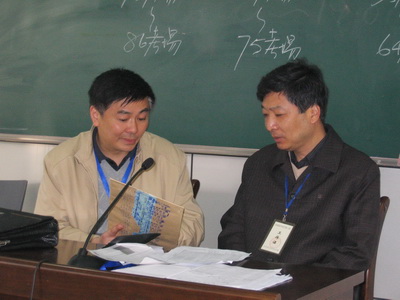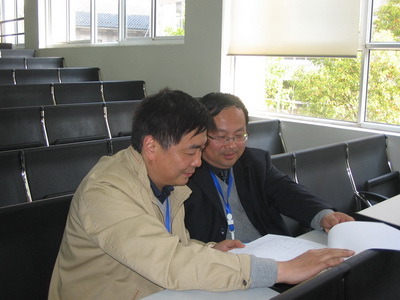 教学处陈波副主任与十二中副校长鲍建业讨论考务工作