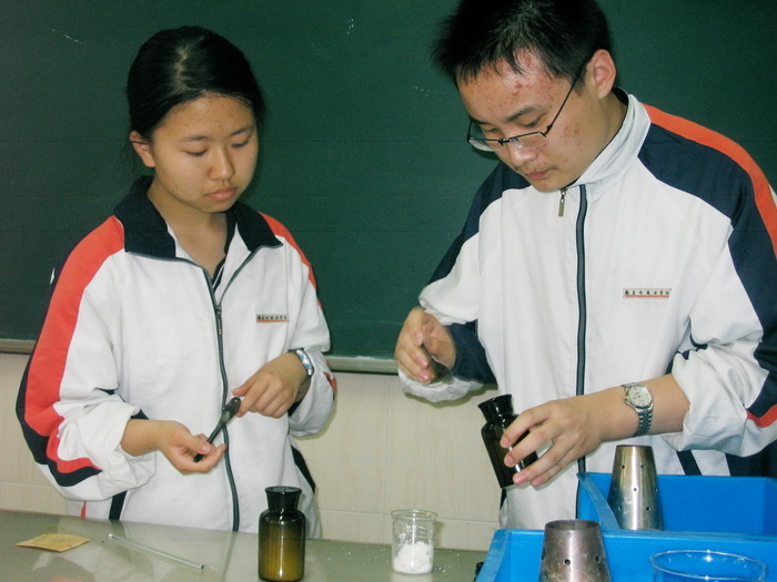 高二年级学生为初二年级学生演示实验