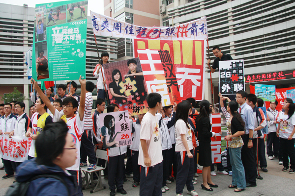 | 9月14日,南外最具特色的学生会竞选活动拉开帷幕,虽然活动还在如火如荼的进行中,各组竞选团队正在鏖战,究竟谁将取得最后的胜利我们还无从知晓,但是竞选的精彩场面让人感到震撼,同学们的热情空前高涨,对于许多参选的同学来说享受过程远比看到结果更值得回味,也更有意义。让我们先睹为快,来看精彩的竞选剪影吧。 |