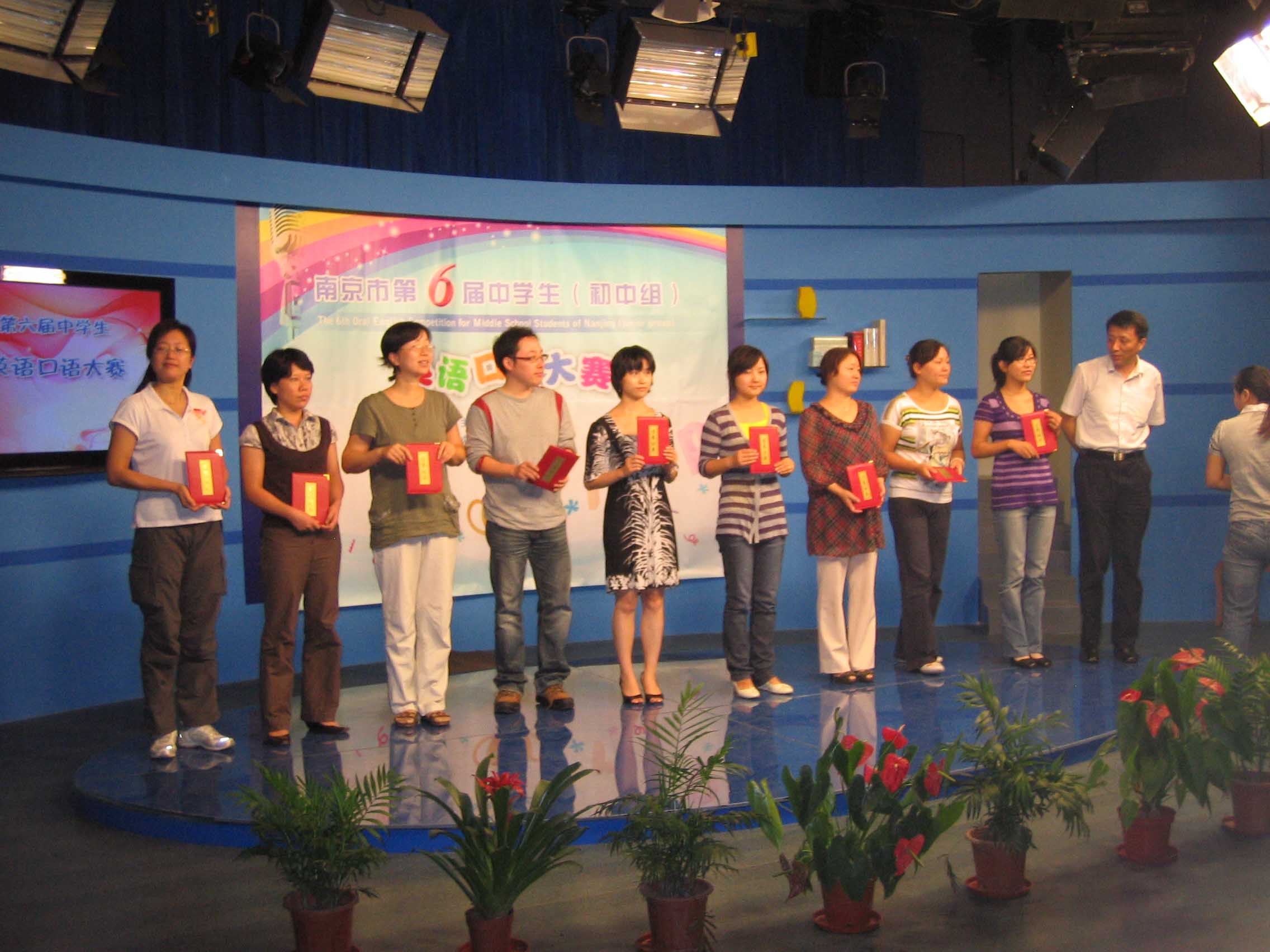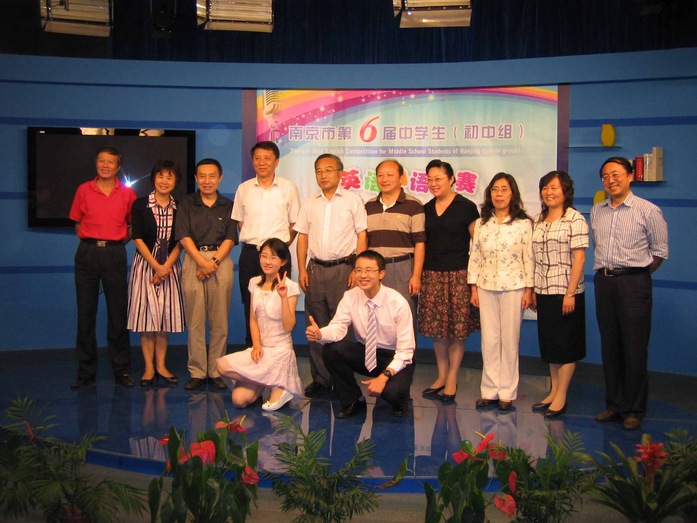 我校获奖同学,主持人和评委东群老师合影
