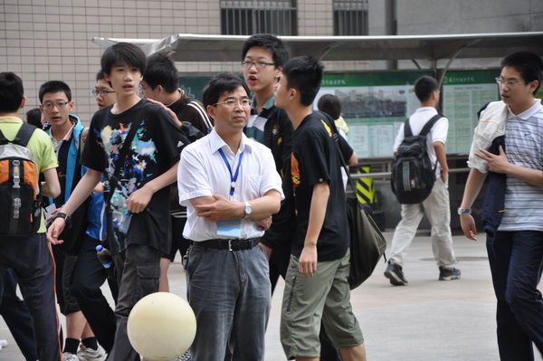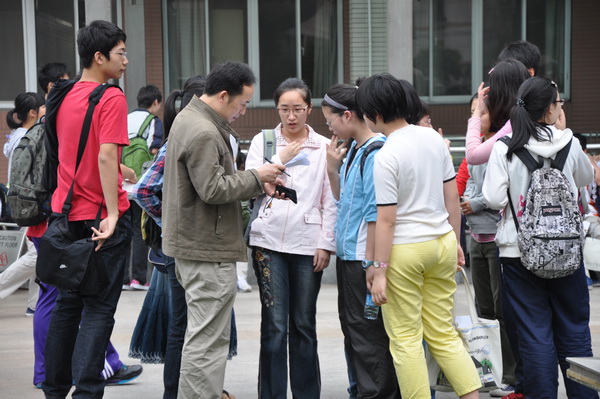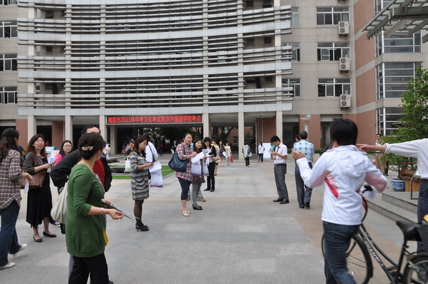 2011年6月15日早上初三年级各班班主任和学科老师早早来到了南外考点送考.年级组和各班主任考前做了细致周密的考前指导,又准备了手提袋帮学生装手机,每位老师都微笑着迎接考生,为他们加油、鼓励,也祝初三所有考生都能考出优异成绩,梦想成真!