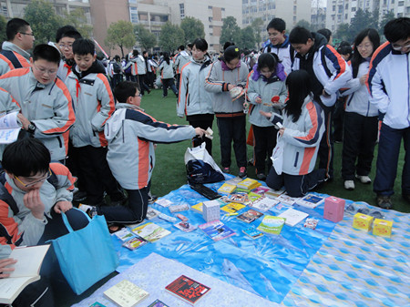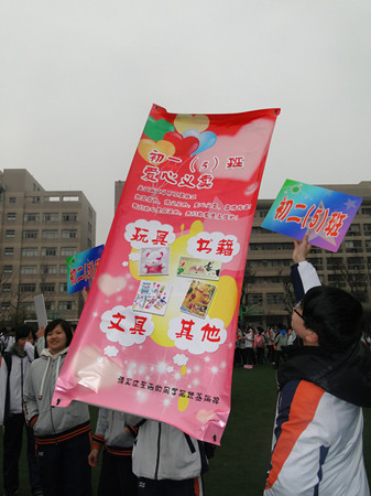 2012年3月5日下午,天公作美,学生旧物交流会暨爱心义卖得以在操场上如期举行,伴随着一首