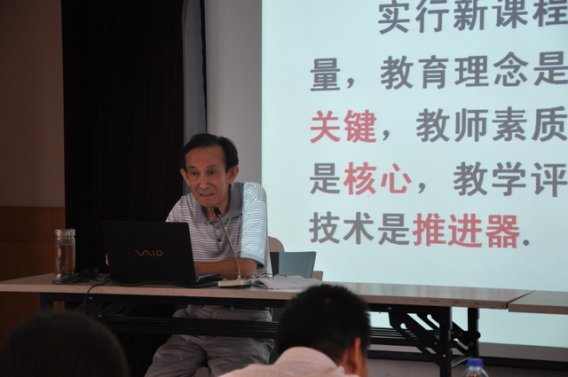 特级教师陈光立作为学校的老教师,经验丰富,从教学的角度出发,以其“关注学生主动建构——新课程课堂教学的一点思考”为主题发言希望教师在成长的过程中勤于学习、勇于实践、善于反思。