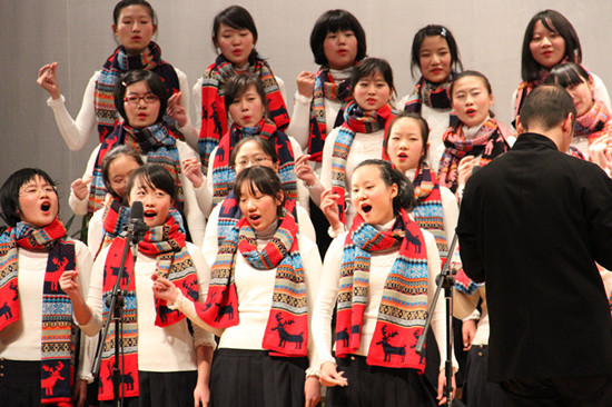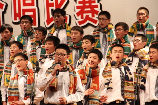 合唱比赛,叶军老师担任指挥,天气虽冷,同学们的热情却洋溢整个会场!