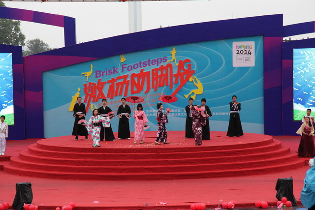 9月9日,“激扬的脚步”——第五届名城会青奥主题嘉年华暨第二届南京青年奥林匹克文化节在玄武湖开幕。高一年级日语班出演了文化节中世界村的环节,表演了具有日本独特气息的美轮美奂的舞蹈。本次活动突出了“奥林匹克主义”、“技能发展”、“幸福与健康生活的方式”、“社会责任”和“表达”五大文化教育主题,让青少年全程参与活动的策划、设计和组织,凸显青少年在青奥会中的主体地位。