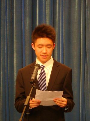 接下来发言的这位学长,估计台下不少同学都很熟悉,他有着非常广泛的兴趣,活跃在校园里很多地方:他是学生会的宣传部长,是体育场上的运动健将,更是深受学弟学妹欢迎