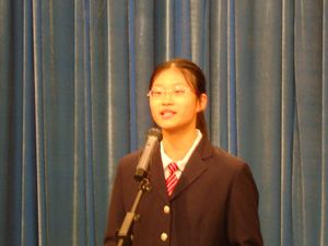 位同学,大家早上好!我是来自高三(1)班的沈安妮,目前被美国哥伦比亚大学录取,今天由我来为大家主持晨会。