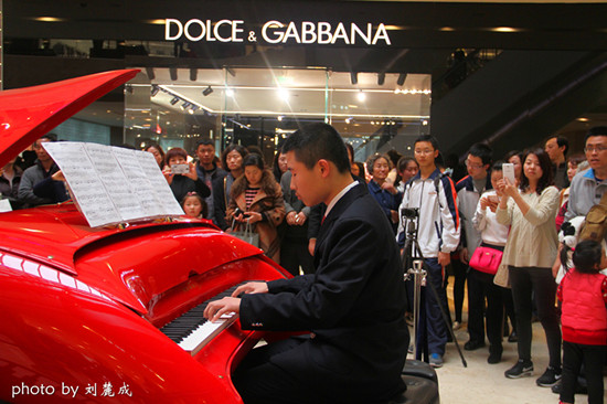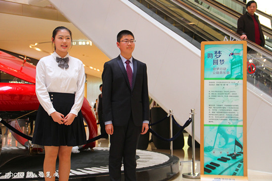 2015年3月5日下午3点半,联合德基广场举办的钢琴演奏音乐会在陈明洁老师的幻想即兴曲中准时开场。南外师生为实现农村孤儿裴同学的“拥有一架电子琴,为爷爷奶奶弹奏美妙歌曲”的心愿,用公益音乐会的形式,向社会进行募捐,为每一个有梦想的孩子加油、助力。音乐会中,南外师生28人参与演奏了古典、流行钢琴曲目,长笛、大提琴、女子小合唱等表演的加入,更丰富了节目的表演形式,使大家在短暂的一小时中享受了一场美妙的视听盛宴。另有19位师生志愿者参与了现场募捐和后勤保障等工作。