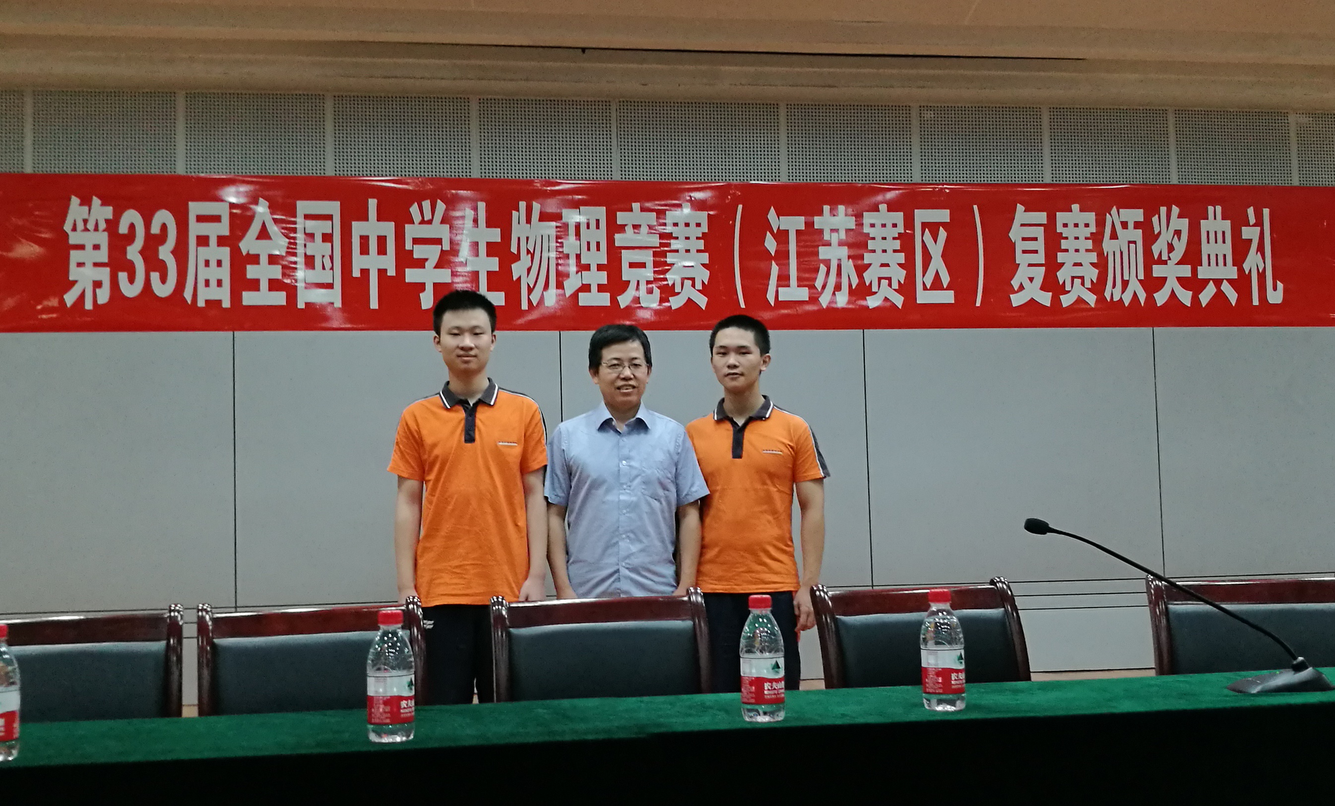 在刚刚结束的第33届全国中学生物理竞赛(江苏赛区)复赛中,我校同学取得优异成绩:刘怡然、汪铮(高二)、姚冠文、乌家宁、胡笑男、高轶寒、周南翔(高二)等7位同学获得全国一等奖(江苏赛区),其中高三(1)班刘怡然同学与高二(1)班汪铮同学进入江苏省集训队。同时,来自高中各年级的27位同学获得江苏省一等奖的好成绩。