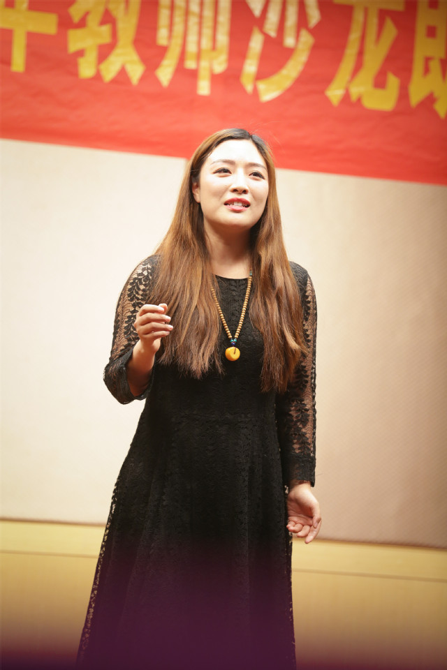 在陈明洁老师极富才华和魅力的倾力主持下,约三十位青年沙龙教师,或单人,或组队,凭借各自对文章独特和深刻的理解,用全身心来演绎文章之美。随着词句的铺展,青年教师的声音或激昂,或柔和,或沉思,或兴奋,或悲伤。青年教师用声音与生命的篇章应和,文章深层的人生意义因而升华,因而变得绵延不断。现场,听刘飞、徐胜媛的三门峡之壮丽,张利、谢亚雄的体育之美,刘飞、赵思达的胡杨之坚,陈明洁的康桥之恋,虞昕、江帆的多语言之清新等等,不一而足,言语实不足以表。