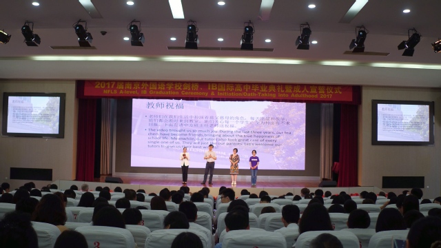 2017年6月22日上午在学校的大礼堂,2017届南外剑桥IB高三同学举办了盛大的毕业典礼。在邹正校长和Mr. Leigh Smith的带领下,盛装打扮的高三同学们徐徐进入了会场,家长、老师与高二的同学们予以热烈的掌声。