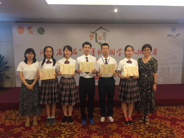 8月26日下午,江苏省首届“菁菁杯”中小学生“国学达人”挑战赛在江苏第二师范学院举行。南外初高中六位同学在经过十几天紧张训练之后,带着徐红漫、戴雅萍、戴霞、唐园园等指导老师的厚望,在瓢泼大雨中走进赛场,他们镇定自若,从容发挥,以初中组第一二三名、高中组第二、四名的骄人成绩完成第一轮竞赛。复赛环节,赛制调整为全程抢答,初中组同学沉着冷静,有两名同学顺利进行下一轮,高中组同学在观摩初中赛后吸取经验,及时调整,其敏捷、机智的表现迎来场上的阵阵喝彩,以优异的成绩成功晋级。第三轮比赛,初中组两位同学就勤学和尊师话题即兴演讲,思路清晰,落落大方,汤隽彦同学成功晋级前四强。高中组同学各以一位古代名人的角色结合情境辩论,他们思维敏捷,有理有据,两位同学脱颖而出,顺利进入四强。在争夺冠亚军的决赛中,汤隽彦、王宇涵同学分获初高中组特等奖。江海月、宋天泽同学分获初高中组一等奖,虞韫嘉同学获初中组二等奖,李家祺同学获优秀奖。