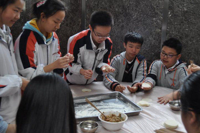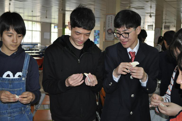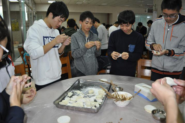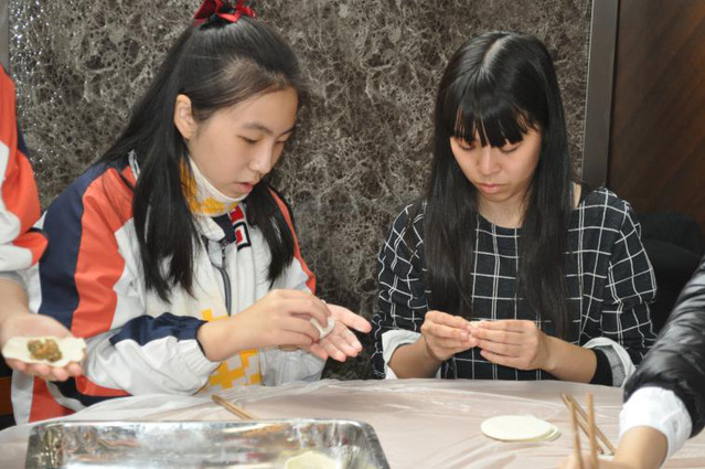 交流会最引人注目的就是包饺子环节了,出乎意料,日本同学们包的饺子相当不错,大家一边包饺子一边交流讨论……一阵阵欢声笑语中,热气腾腾的饺子出炉了,南外的食堂洋溢着欢乐祥和的气氛。