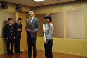 观看影片后,两校师生互换了纪念品。南外师生送给日本友人一幅学生自己创作的描绘南京风景的水墨山水画,并题款著名诗人李白《金陵三首》中的诗句“地即帝王宅,山为龙虎盘。金陵空壮观,天堑净波澜。”近江兄弟社的师生们则赠送了一把描绘烂漫樱花的精美纸扇。