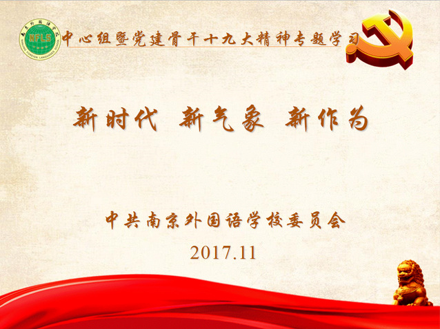 11月13日下午,党委中心组暨党建骨干,围绕“新时代新气象新作为”,在行政楼508进行了十九大精神的专题学习。校党委书记刘前树系统阐述了十九大的主题和重要意义,从“新方位、新思想、新判断、新方略、新部署”五方面解读十九大精神,同时关注到党章的修改,以及十九大中与教育有关的论述。他希望中心组成员借此机会加深对十九大精神的理解,并在工作中予以落实。