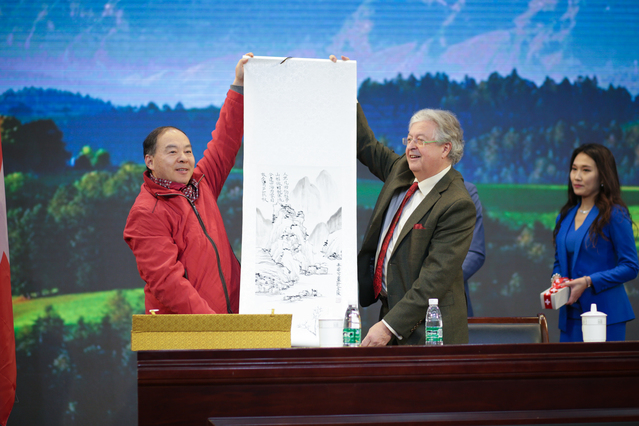 最后,邹正校长代表南外向大使先生赠送了一幅由本校学生绘制的金陵风景图。至此,整个交流活动圆满结束。