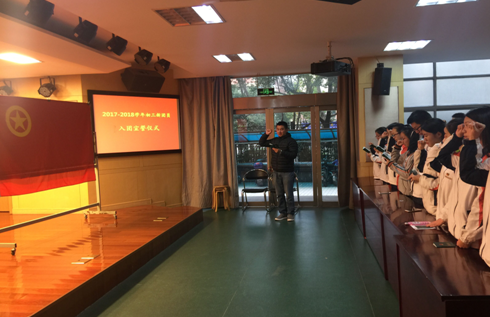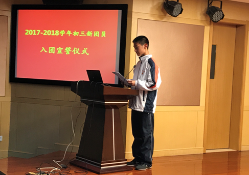 同学们老师们下午好,我是初三7班张心琪。2017-2018学年初三新团员入团宣誓仪式现在开始。
