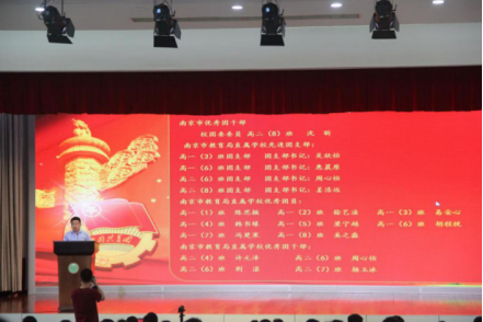 邹正校长讲话。“不忘初心,努力奋斗”是邹校长的讲话主题,他首先祝贺了以上获得表彰的团支部和个人,祝贺高二的同学和老师们在小高考中取得4A率全省第一的好成绩,同时祝贺了高一的同学能在面对九门学科的学业压力下努力拼搏,成就最好的自己。邹校长通过自己工作中的一个小故事告诉我们,人在18岁左右定下的志向,往往会影响一辈子,所以如今的我们,要在艰苦奋斗中净化灵魂,磨砺意志,坚定信念。“奋斗的青春最美丽,因为那是我们追逐梦想,努力实现目标的青春旋律;奋斗的青春需要积累,因为万丈高楼平地起,任何高远的志向,都离不开脚踏实地的付出和实践。”校长的谆谆教诲提醒我们,作为南外学子,我们需要责无旁贷地从“爱国,进步,民主,科学”的五四精神中汲取营养,努力提升自己,把个人梦想与国家发展相结合,拥有家国情怀,同时要储备扎实的科学知识,基础知识,积累丰厚的文化底蕴,这样才能在面临人生选择时更加从容。邹校长殷切期盼着我们为实现中华民族伟大复兴的中国梦,而奉献我们的青春力量。