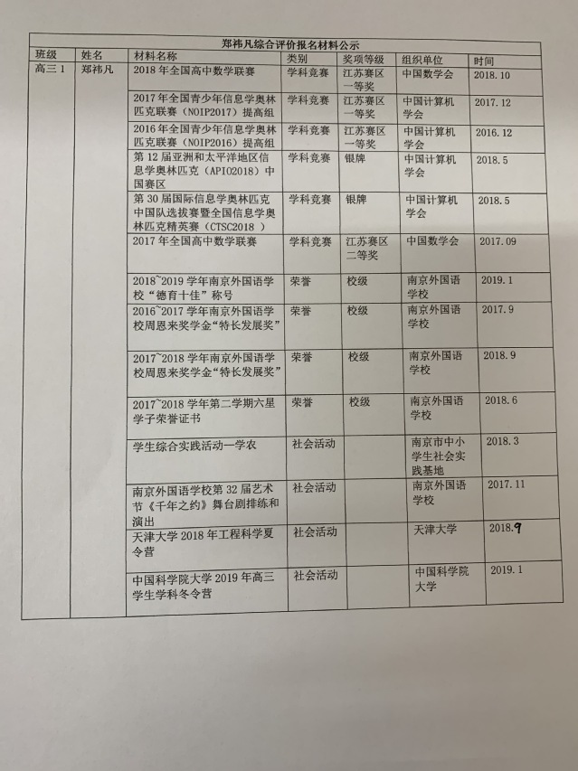 3.经本人申请,现将综合评价获奖情况申报材料公示如下: