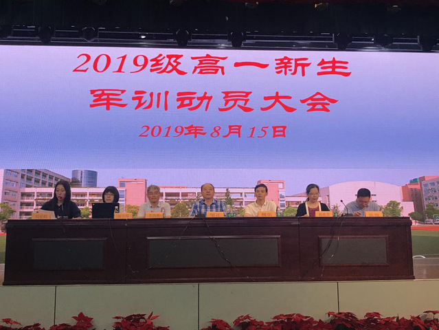 2019年8月15日8时,穿戴整齐的学生依次准时落座,在高一年级组副组长刘爱娟老师的宣布下,2019级高一新生军训动员大会隆重召开。高亢的国歌声后,邹正校长首先发表致辞,在对南外往届成绩肯定的同时,对新高一学生寄以六点希冀。随后高一年级组组长姚小琴老师介绍了军训第一天的日程,并提出了军训要求和注意事项。同学们认真聆听,会场秩序井然而不失活力。