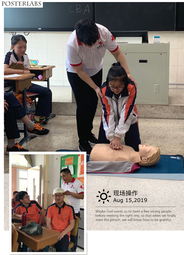 “纸上得来终觉浅,绝知此事要躬行。”将理论与实践结合一直是南外学子的特长。下午一点半,红十字培训志愿者老师准时到班,短暂地温习上午所学后,干脆利落地直奔实践主题,主要包括包扎、按压等常用急救方法。过程中,老师让学生的自主性得到充分发挥的同时,孜孜不倦地强调动作要领,帮助规范学生细节。2小时的课程在老师深入浅出、生动形象的讲授中转瞬即逝,在最后,老师充分肯定了学生的人文关怀心以及学习能力。