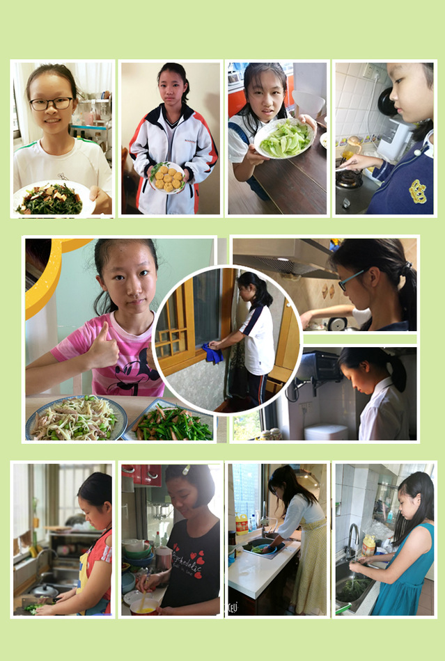 在做家务的同时,不仅学会了基本的生活技能,还享受了劳动成果的喜悦和帮家人分担的快乐。如沈达弘同学说:一个下午的劳动虽然很累,但是看着整齐的书架,特别有成就感。陈祉羽同学深切感受到:虽然今天我只是做了一道菜,但也让我学到了很多东西,尤其是做事的方法和顺序,我相信这只是开始,人生中还有更多的菜肴和更多的挑战等着我去一一实践。