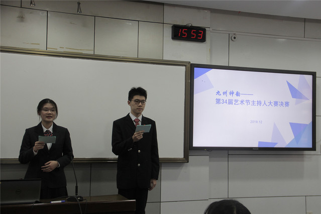 本届主持人大赛以艺术节主题“九州神韵”为背景,经过初赛中华经典诗词朗诵的选拔,共22名同学成功进入决赛。决赛于12月16日(星期一)下午15:50-17:00在E二楼阶梯教室成功举办。