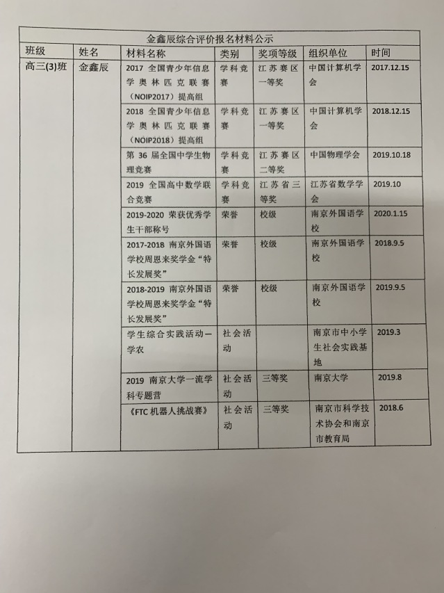 3.经本人申请,现将综合评价获奖情况申报材料公示如下: