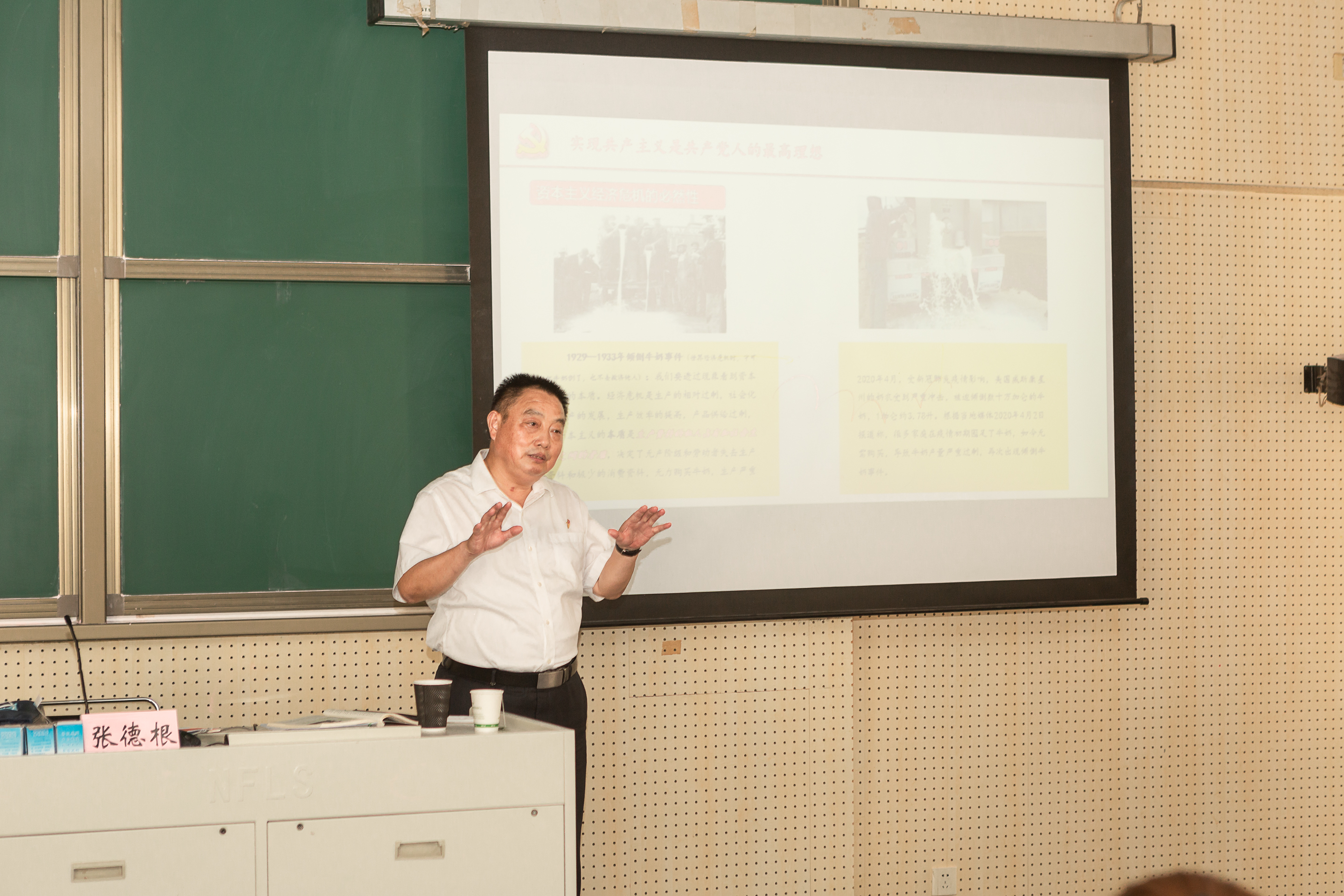金陵科技学院马克思主义学院党委保卫部部长张德根副教授主讲第三专题《党的最终目标和现阶段任务》。