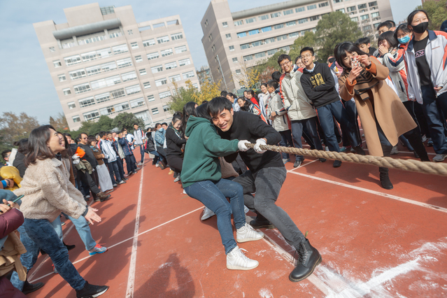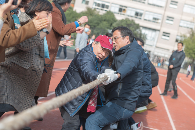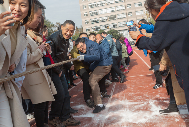平时在讲台上严肃认真的老师,撸起袖子在操场上相互角力,看得学生们好不兴奋。在一片欢声笑语中,南外教职工冬季拔河比赛圆满结束。