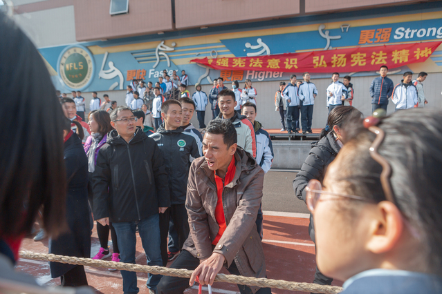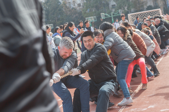 在连日的阴雨之后,我们终于迎来了一个阳光明媚的冬日。12月4日中午,南外教职工冬季拔河比赛在学校操场举行。