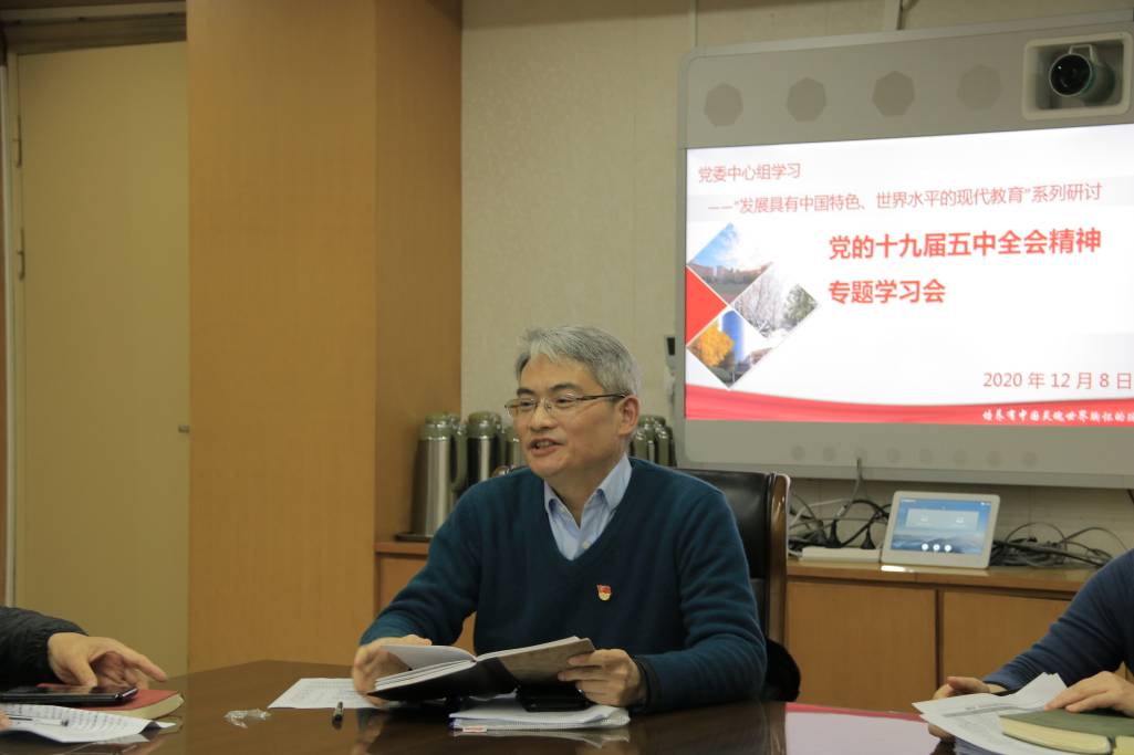 12月8日下午中共委员会召开了中心组扩大学习讨论会,集中学习领会中共十九届五中全会精神,并就如何更好地在学校十四五规划中发挥智慧与力量进行了热烈讨论。会议由党委刘前树书记主持,全体党委委员及中层干部出席会议并参与讨论。
