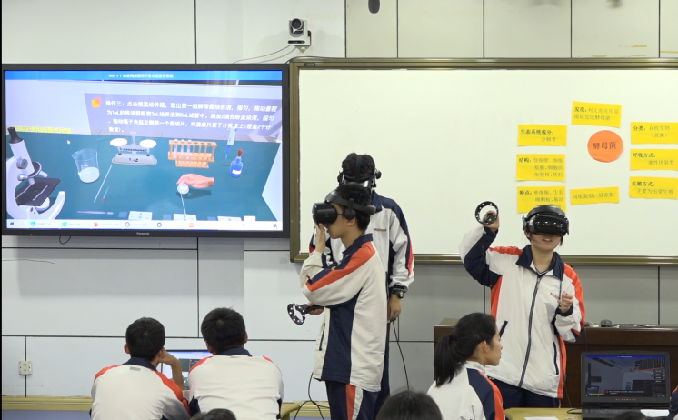 徐胜媛老师和宁海中学刘晓珍老师同课异构,分别利用矩道科技生物虚拟仿真软件开展《探究酵母菌种群大小的动态变化》实验复习课。徐胜媛老师的课堂内容层次清晰,逻辑紧密,将VR的沉浸感和交互性融合到常态化复习的各个环节中,让学生们通过身临其境的实验探究,获取微观可视化、过程直观化的感受,让学习更加高效。