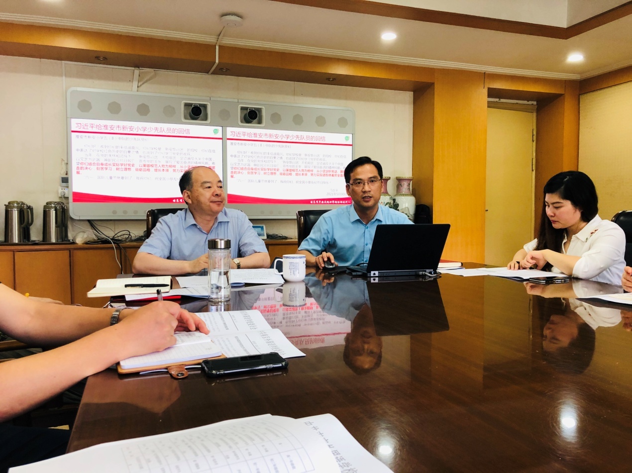 会议首先学习了《习近平给淮安市新安小学少先队员的回信》,由党委书记刘前树同志领学。