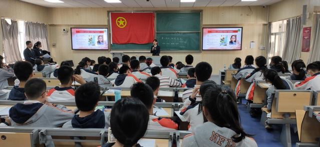 团委委员徐宁远、胡容晓、王彦舒、吴雨潼、韦秋霖、马彤畅、纪涵予、程子懿、赵孙稼分别就中国共产党成立和党的一大召开,中国特色社会主义道路,我国“文化和自然遗产日”及进入《世界遗产名录》的代表性遗产,中国主要能源的状况和人均占有,粮食安全和节约问题等课程向同学们作了宣讲。