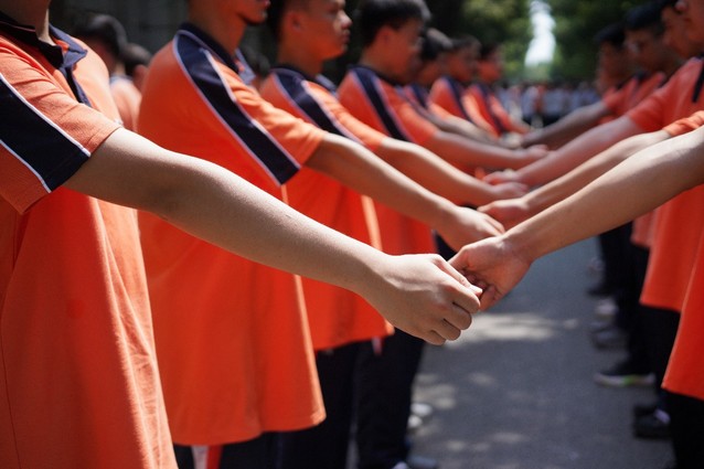 早上,我们寝室统一在五点醒来,迅速整理完内务。随着一声哨响,我们班整队前往大操场练习跨立并进行跑圈。上午练习的是摆臂,我们抬着头,挺着胸,将手臂尽力绷直。