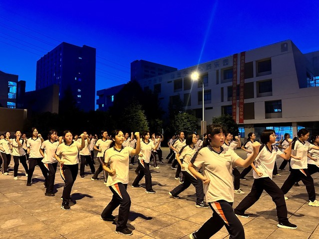 在午休与略显忙乱的内务整理过后,女拳方阵再一次在烈日曝晒下整齐地排列在训练场上。首先进行的是前5招的复习,随后又继续学习了第6至第9招,其中有数“招”内含多“式”。这对于动作加快就容易手忙脚乱的我而言有些困难。幸运的是,在经验丰富的教官的指导下,我与女拳方阵其他成员的动作得以整齐划一。