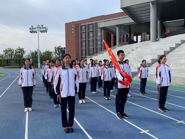 建校60周年恰逢祖国74周年华诞,北京东路校区门前,五星红旗与南外校旗猎猎飘扬。上午8时30分许,在国旗与校旗下,新一届高一国旗班同学身着校服,精神抖擞,队容严整,整装待发。