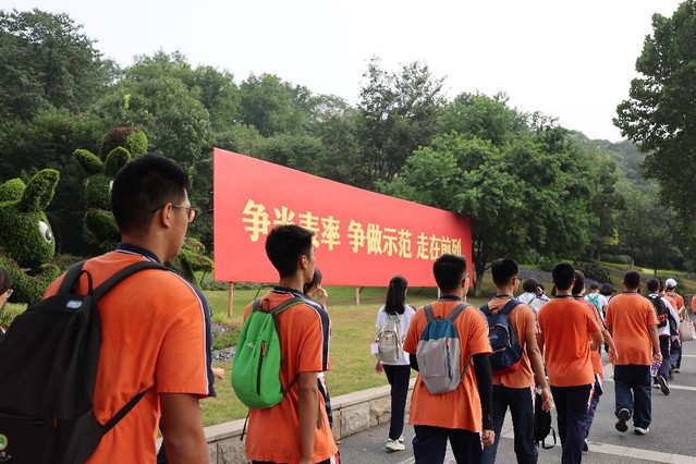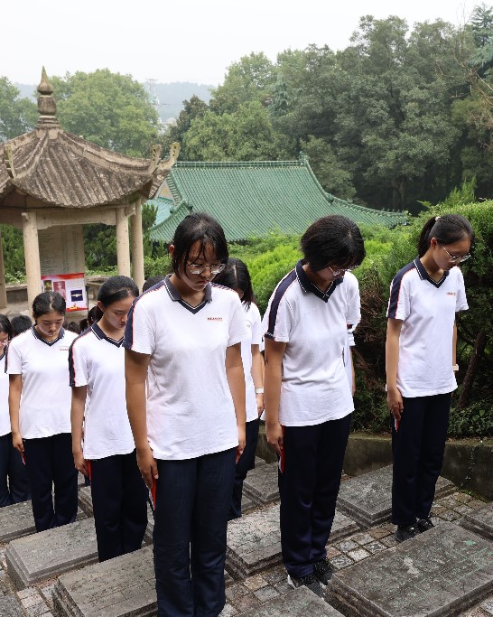 2023年9月29日,第十个烈士纪念日前夕,2023级高一国旗班的同学及带队老师共同从北京东路校区步行前往抗日航空烈士公墓,举行宣誓仪式和默哀式,感悟英烈爱国献身精神,凝聚建设国防思想共识,培育青年团结奋进力量。