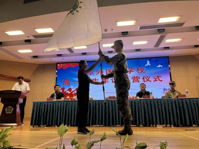 开营仪式上,行知基地刘明祥校长、承训部队教官给同学们送上了亲切而不失严厉的勉励。在激昂的军乐声中,林沁副校长代表学校向承训部队授校旗。戴喜副校长在发言中向同学们提出了四点要求:严格自我要求、战胜困难险阻、坚决服从命令、学习报国本领。他还希望同学们在军训中培养团队意识,用团队意识激励自己争做示范、走在前列。来自高一(1)班的丁一同学代表学生发言,他表示全体同学一定会牢记行知基地领导、教官的要求,一定不辜负学校领导的期望,以火热的行动应对火热的天气,完成高中生涯第一课。